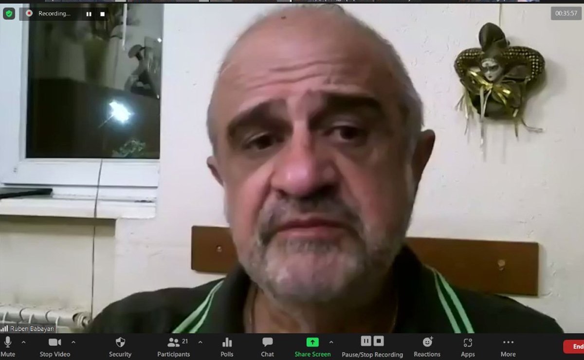 «Ազդակ»-ի առցանց 34-րդ լսարանին դասախօսն էր Հայաստանի Հանրապետութեան տիկնիկային թատրոնի գեղարուեստական ղեկավար փրոֆ. Ռուբէն Բաբայեան, որ զեկուցեց «Հայաստանի Հանրապետութեան մշակութային քաղաքականութիւնը` այսօր» նիւթին մասին: Լսարանը վարեց «Ազդակ»-ի ելեկտրոնային բաժինի աշխատակից Մինաս Հանս Քէհեան: