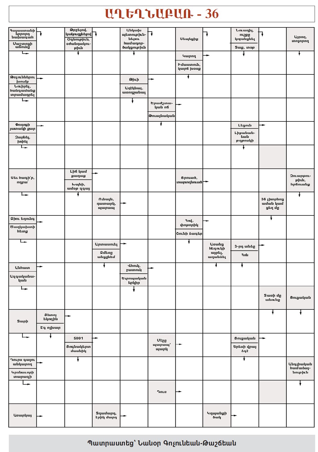 Պատրաստեց՝ <strong>ՆԱՆՕՐ ԳՈՉՈՒՆԵԱՆ-ԹԱՇՃԵԱՆ</strong> <a href="https://www.aztagdaily.com/wp-content/uploads/2021/09/agheghnapar-tiv-36.jpg"><img class="aligncenter size-full wp-image-521374" src="https://www.aztagdaily.com/wp-content/uploads/2021/09/agheghnapar-tiv-36.jpg" alt="" width="1057" height="1500" /></a>