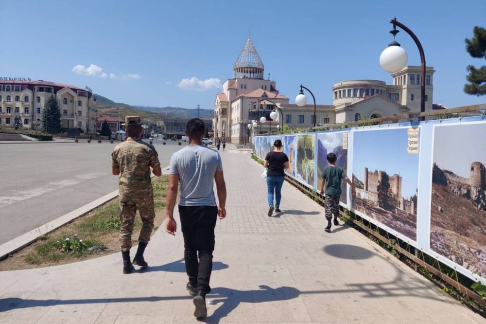 Հասնում ենք Ստեփանակերտ: Անցնում ենք շուկայով, յետոյ հասնում` Վերածնունդի հրապարակ, պտտւում ենք քաղաքում: Այս քաղաքում պատերազմի շունչը դեռ օդում զգացւում է: Այն իր հետքը թողել է: Շէնքերի, սրճարանների, խանութների վրայ տեսանելի են կրակոցների հետքերը: Սակայն մարդիկ փորձում են շարունակել ապրել, փորձում են վերագտնել կորցրած ուժն ու ժպիտը: