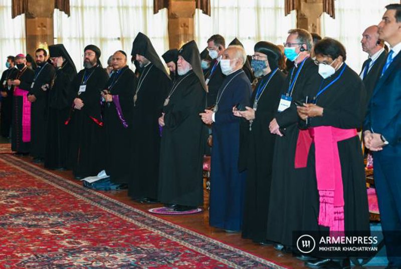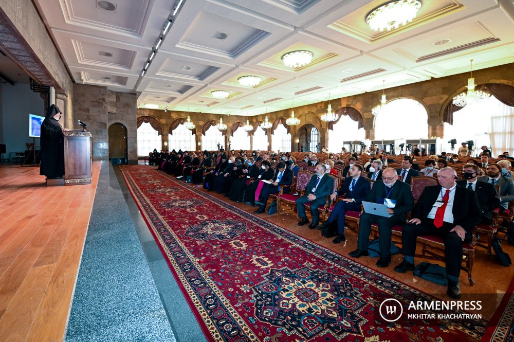 Ամենայն Հայոց կաթողիկոսը իր ողջոյնի խօսքին մէջ շեշտեց կրօնի եւ հոգեւորականներու դերն ու գործունէութիւնը կրօնական ազատութեան եւ խաղաղութեան գործին մէջ: