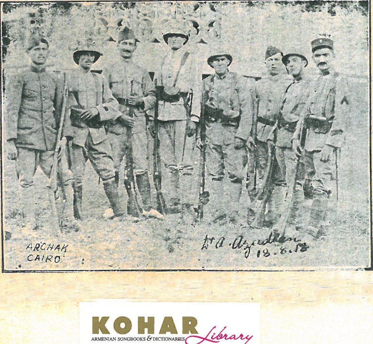 Տասը օր ետք այս երկու խումբերը կը փոխադրուին Կիպրոս, Մոնրակա, ուր կը մնան ութ ամիս: Զինուորական մարզումներէ ետք կը վերադառնան Փոր Սայիտ, ապա Իսմայիլիա անապատ, անկէ ետք` Միժտալ… 35 օր ետք դէպի ճակատ, ուր զիրենք կը սպասէր մեր դարաւոր թշնամին: 1918 սեպտեմբեր 10-ին կը պատրաստուին պատերազմի երկրորդ գիծի վրայ. ութ օր ետք, սեպտեմբեր 18-ի ժամը 4:00-ին պատերազմի փողը կը հնչէ…