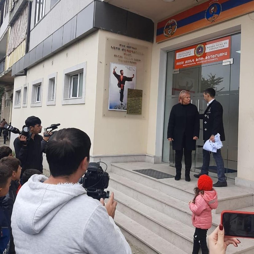 Յուշատախտակի բացումը կատարեցին Քեպապճեանի կինը` Սիլվա Աղամանուկեան եւ Արցախի Ուշու քոնկ ֆուի ֆետերասիոնի նախագահ Դաւիթ Գրիգորեան: