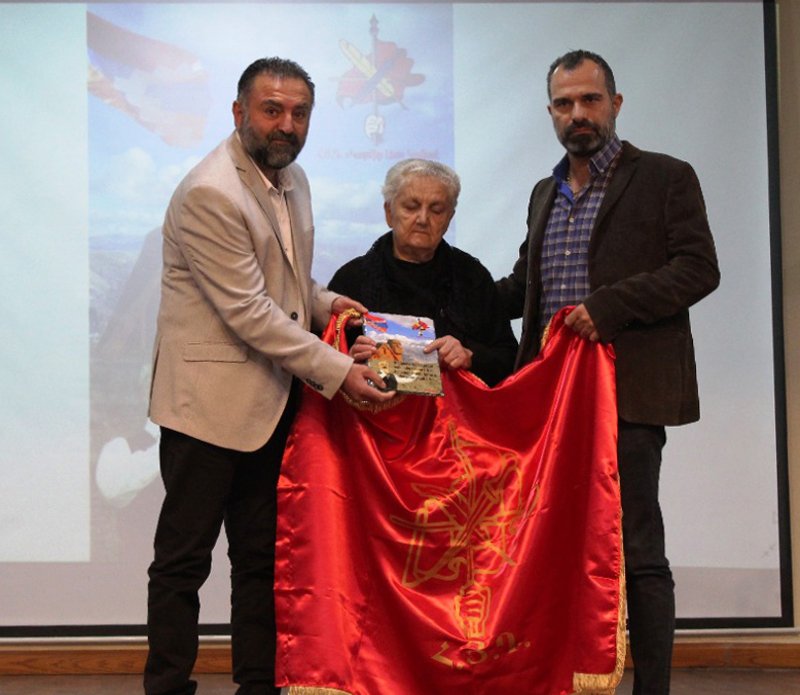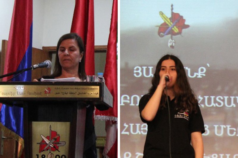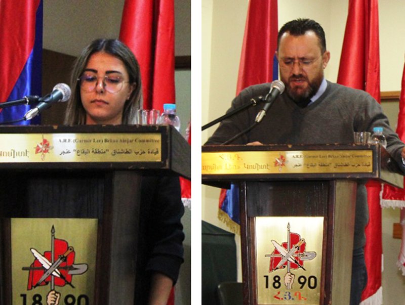 Այնուհետեւ բեմ հրաւիրուեցաւ նահատակ Գէորգ Հաճեանի հերոսածին մայրը, որուն յանձնուեցաւ յուշանուէր եւ ՀՅ Դաշնակցութեան դրօշը` ՀՅԴ Լիբանանի Կեդրոնական կոմիտէի եւ ՀՅԴ «Կարմիր Լեռ» կոմիտէի ներկայացուցիչներուն ձեռամբ: