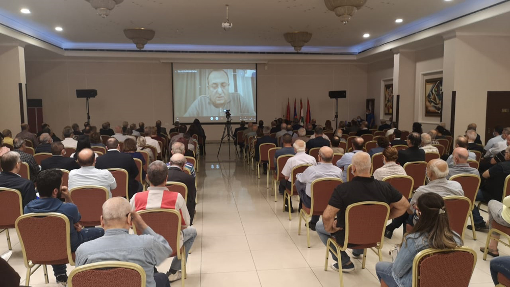 Լիբանանի եւ Հայաստանի քայլերգներուն ունկնդրութենէն ետք, Յակոբ Հաւաթեան անդրադարձաւ օրուան հաւաքի շարժառիթին եւ նպատակին ու ըսաւ. «Մենք Արցախի համար ոչ մէկ բան խնայած ենք, անցնող մէկ տարուան ընթացքին խոր ընդվզումով, յուզումով ու մտահոգութեամբ ընդունեցինք պարզուած իրականութիւնը»: «Մէկ բան յստակ է ՀՅԴ Լիբանանի Կեդրոնական կոմիտէին համար, որ մենք հոս հաւաքուած ենք, որովհետեւ Հայաստանը, Արցախը եւ համայն հայութիւնը կը գտնուին վտանգաւոր անկիւնադարձի դիմաց», ընդգծեց Հաւաթեան` նշելով, որ այս իսկ պատճառով ՀՅԴ Լիբանանի Կեդրոնական կոմիտէն որոշեց Լիբանան հրաւիրել Հայաստանի Ազգային ժողովի պատգամաւոր, ՀՅԴ Հայաստանի Գերագոյն մարմինի անդամ, նախկին նախարար, ակադեմական, տնտեսագէտ ընկեր Արծուիկ Մինասեանը, որպէսզի հայ երիտասարդութեան, ուսանողութեան եւ միութիւններուն պարզէ տիրող իրավիճակը: «Սակայն ի յայտ եկաւ, թէ արգիլուած է անոր ելքը Հայաստանէն, բայց «անմիջապէս մենք դասաւորեցինք ընկեր Արթուր Խաչատրեանի ժամանումը եւ որոշեցինք ընկ. Արծուիկին խօսքը լսել «Սքայփ»-ի միջոցով»: Ապա Հաւաթեան ներկայացուց Ազգային ժողովի պատգամաւորներ Արծուիկ Մինասեանն ու Արթուր Խաչատրեանը` նշելով, որ անոնք Հայաստանի մէջ ունին քաղաքական եւ յատկապէս տնտեսական կենսափորձ, նաեւ ընկեր Արթուր ունի բանակային ծառայութեան փորձառութիւն: