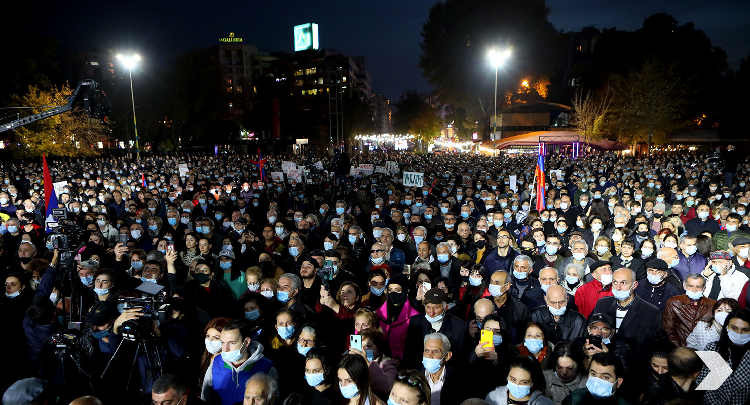 Նախքան հանրահաւաքի մեկնարկը, ներկաները մէկ վայրկեան լռութեամբ յարգեցին 44-օրեայ պատերազմին յանուն հայրենիքին զոհուած հերոսներուն յիշատակը: Օրը պատահականօրէն չէր ընտրուած, մէկ տարի առաջ, այս օրը ստորագրուած է յանձնուողական յայտնի փաստաթուղթը: