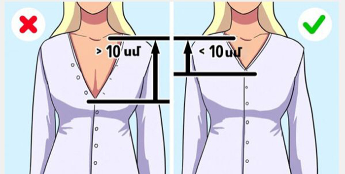 3.- Գրասենեկային շապիկի օձիքին կտրուածքը պէտք չէ որ 10 սմ աւելի խոր ըլլայ: