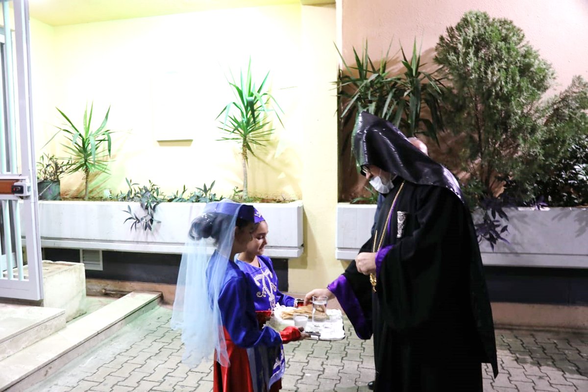 Առաջնորդը դիմաւորեցին նաեւ Համազգայինի Լիբանանի Շրջանային վարչութեան անդամներ, Գեղարուեստի դպրոցներու խնամակալութեան անդամներ եւ տնօրէնը: Համազգայինի «Կարկաչ» երգչախումբը ներկայացուց հայերէն, իտալերէն, արաբերէն եւ անգլերէն փունջ մը երգեր:
