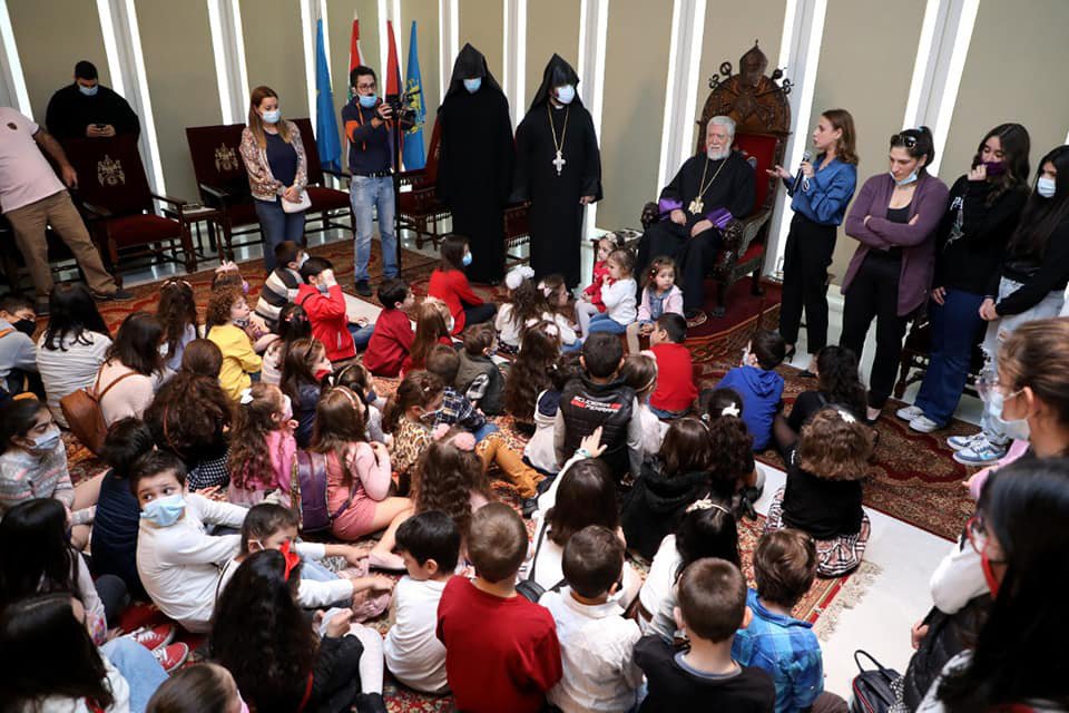 Ներկայ տարեմուտին, առաւել խանդավառ թափով եւ մեծ թիւով աշակերտներու ներկայութեամբ, կիրակի, 28 նոյեմբեր 2021-ին, Ս. պատարագէն անմիջապէս ետք, գլխաւորութեամբ կաթողիկոսարանի Քրիստոնէական դաստիարակութեան բաժանմունքի եւ Կիրակնօրեայ վարժարաններու վարիչ Զարեհ վրդ. Սարգիսեանի, Կիրակնօրեայ վարժարանի աշակերտներէն խումբ մը եւ ուսուցչական կազմը այցելեցին Արամ Ա. կաթողիկոսին: