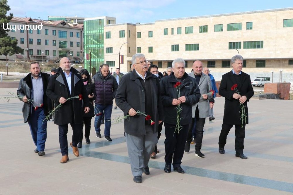 Հայ դատի աւելի քան 20 յանձնախումբերէ եւ գրասենեակներէ, ինչպէս նաեւ ՀՅԴ կուսակցական մարմիններէ ժամանած մօտ 50 ներկայացուցիչներ Ստեփանակերտի մէջ նախ այցելեցին Եղբայրական գերեզմանատուն` իրենց յարգանքի տուրքը մատուցելու արցախեան պատերազմներու զոհերու յիշատակին: