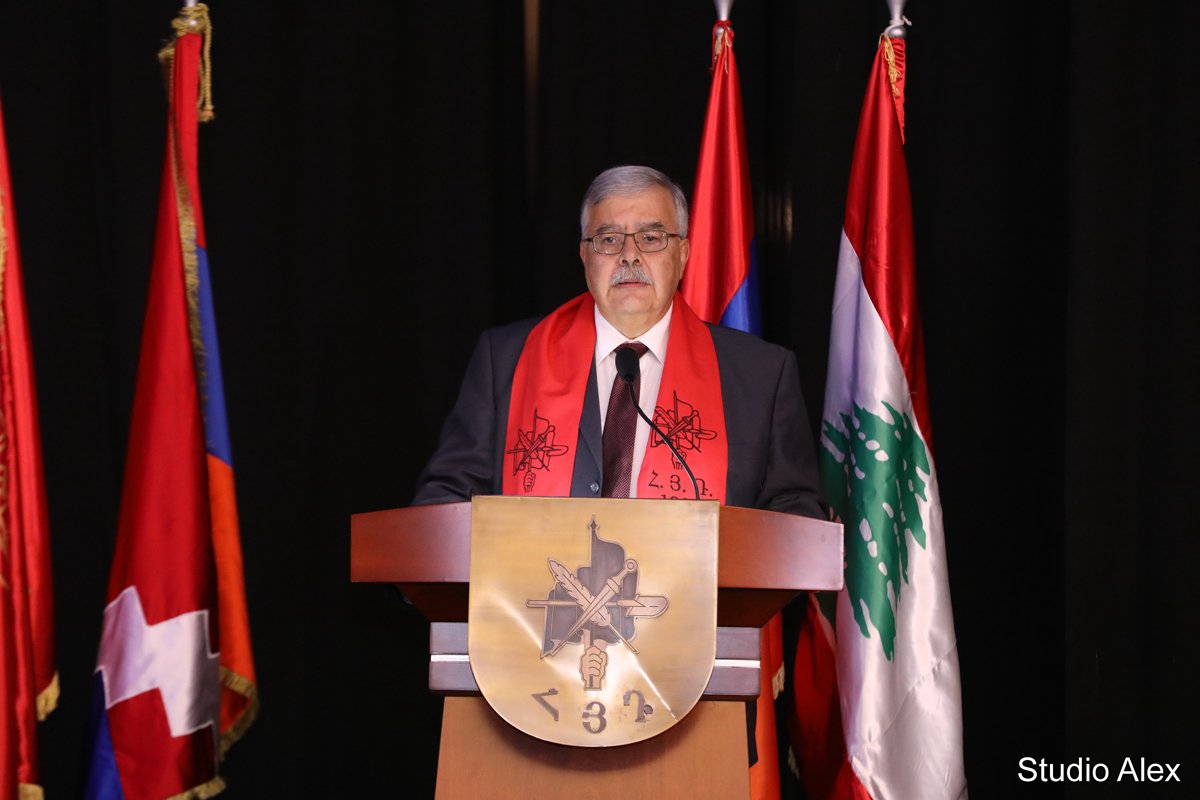 Ուրախ եմ, որ խօսքի այս առիթը կ՛ունենամ Լիբանանի մէջ, սփիւռքի հայատրոփ հնոցը հանդիսացած համայնքի պուրճհամուտեան միջնաբերդին մէջ. Լիբանանը մեր սրտին ու մտքին մէջ յատուկ տեղ ունի, անոր ցաւերը մեր ցաւերն են, անոր իրագործումները` մեր բոլորին յաջողութիւնը: Այս պատճառով է, որ այս շաբաթ ՀՅԴ Բիւրոն ամբողջ կազմով հոս է` լիագումարի, հոս են նաեւ մեր շրջաններու ներկայացուցիչները, որոնք այս տարի մեր մարմիններու ընդհանուր ներկայացուցչական ժողովը կը գումարեն այստեղ` Պուրճ Համուտի մէջ: Ուրախ եմ նաեւ նշելու, որ երեք տարբեր տագնապներէ անցած Լիբանանը` քաղաքական եւ տնտեսական տագնապ, համաճարակ եւ Պէյրութի նաւահանգիստի պայթում, երբեք չէ տկարացուցած մեր այս հոյակապ համայնքի վճռակամութիւնը, հաստատ կամքը, ամբողջական նուիրումը եւ մեր պայքարին անոր փարիլը: Վստահ եմ, որ համաձայն էք, թէ մենք երբեք առանձին չենք ձգեր մեր Լիբանանի սիրելի ժողովուրդը, մենք երբեք չենք կրնար անտեսել ձեր կարիքները եւ ատոր համար մենք եկանք հաւաքաբար այստեղ, մեր համաշխարհային ներկայացուցչութեամբ, ըլլալու ձեր կողքին եւ յայտնելու մեր ամբողջական նեցուկը: