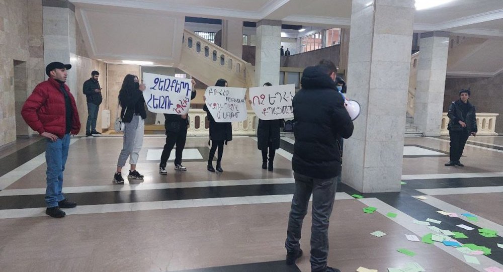 ՀՅԴ Հայաստանի երիտասարդական միութեան Երեւանի պետական համալսարանին մէջ ուսանող քանի մը անդամներ երէկ, 17 դեկտեմբերին բողոքի նախաձեռնութեամբ մը հանդէս եկան ընդդէմ համալսարանի բռնազաւթման: