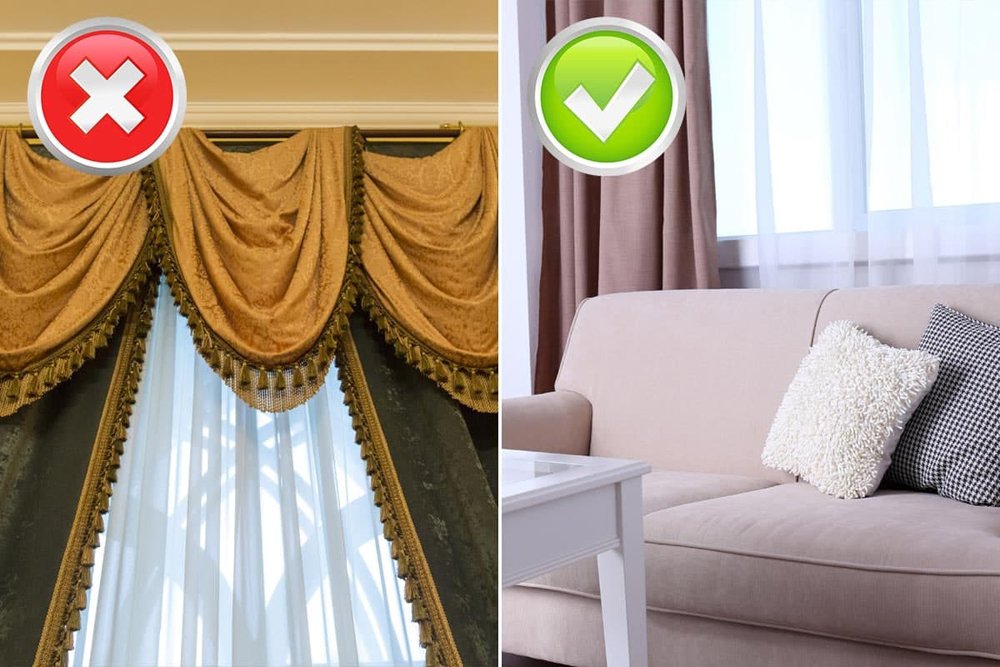 Ոճաբաններու կարծիքով, պատուհանները ամբողջութեամբ ծածկող ծաւալային թանձր վարագոյրները ճնշող եւ անշնչելի կը դարձնեն բնակարանը, մանաւանդ եթէ հիւրասենեակը այդքան ալ մեծ չէ, իսկ կահոյքն ու վարագոյրները թաւշեայ կամ այլ թանձր կերպասով պատրաստուած են:
