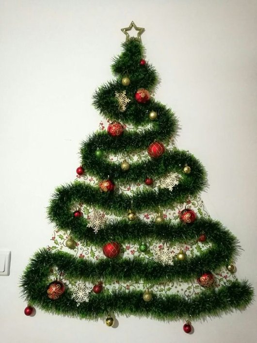– Պատին վրայ յարդարուած այս տօնածառը եւս շատ գործնական է, քանի որ երբեք տեղ չի գրաւեր: Ձեզի կը մնայ ընտրել գեղեցիկ, երկար դրասանգ մը (guirlande) զայն հաստատել պատին վրայ եւ ճոխացնել քանի մը կարմիր կամ ոսկեգոյն գնդակներով եւ անշուշտ աստղով մը: