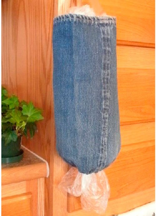 – Վերջապէս, ճինզ տաբատին ոտքի բաժինը օգտագործելով` կարելի է պատրաստել կերպընկալ տոպրակները խմբելու եւ տեղադրելու շատ յարմար պարկ մը:
