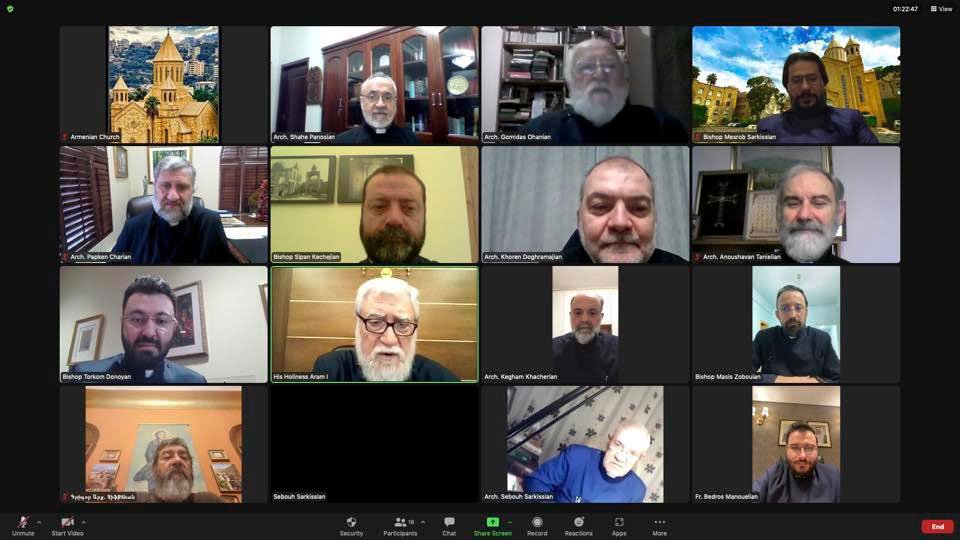 Ուրբաթ, 21 յունուար 2022-ի երեկոյեան ժամը 8:00-ին, Արամ Ա. վեհափառ հայրապետը շուրջ երկու ժամ առցանց հանդիպում ունեցաւ Մեծի Տանն Կիլիկիոյ կաթողիկոսութեան թեմակալ առաջնորդներուն հետ: