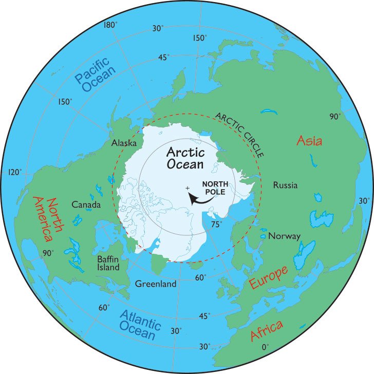 – Հիւսիսային բեւեռը երկրագունդին առանցքին հիւսիսային ծայրն է եւ կը գտնուի Արքթիք ովկիանոսին մէջ: