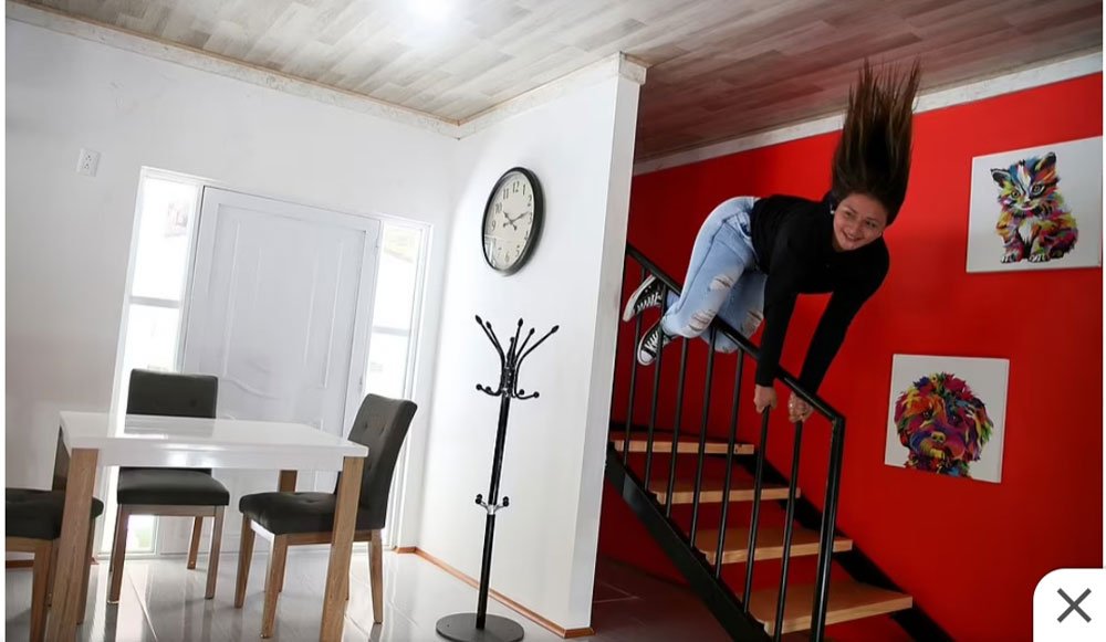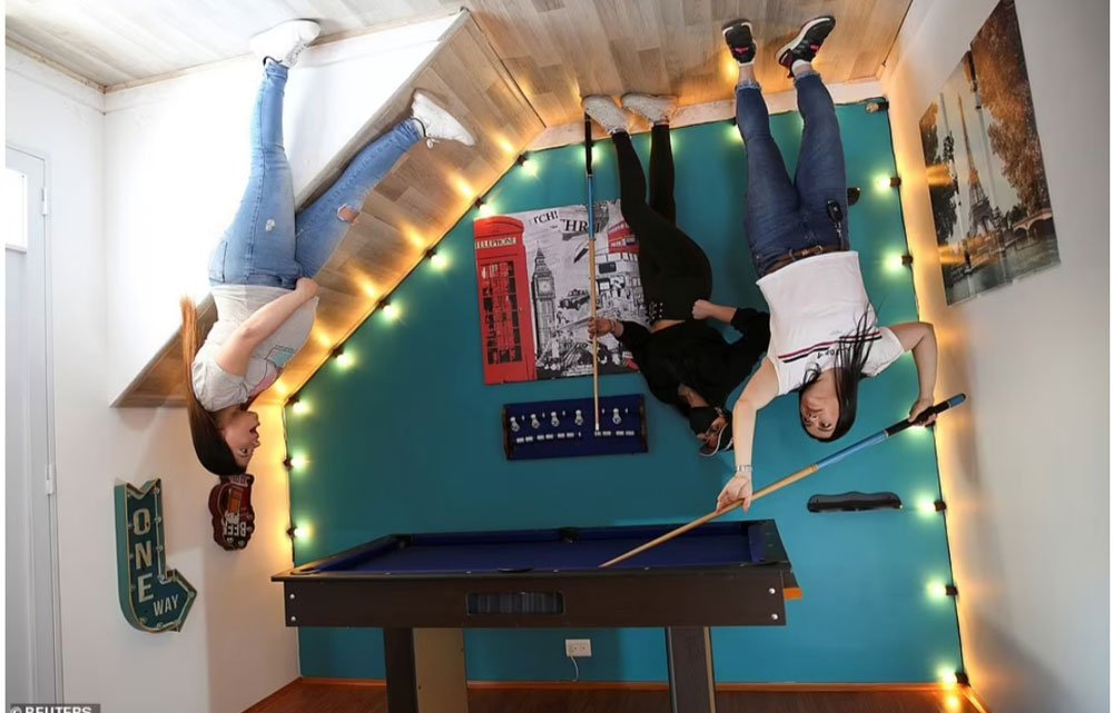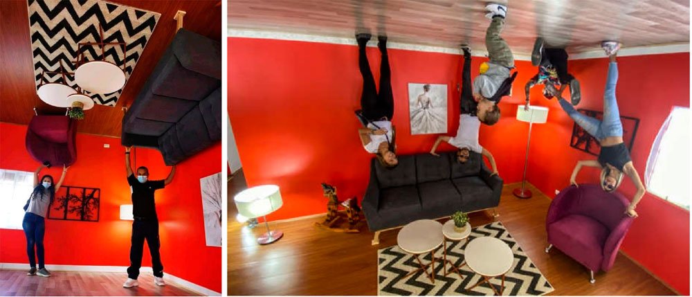 Այցելուները կը նկարուին այս արտասովոր վայրին մէջ` ձեռքերնին վեր, կամ տարօրինակ ձեւեր առնելով: Ապա պարզապէս երբ նկարները համակարգիչին վրայ 180 աստիճան դարձուին, գետինը պիտի վերածուի առաստաղի, եւ մարդիկը ոտքերնին կախուելու տպաւորութիւնը պիտի յառաջանայ:
