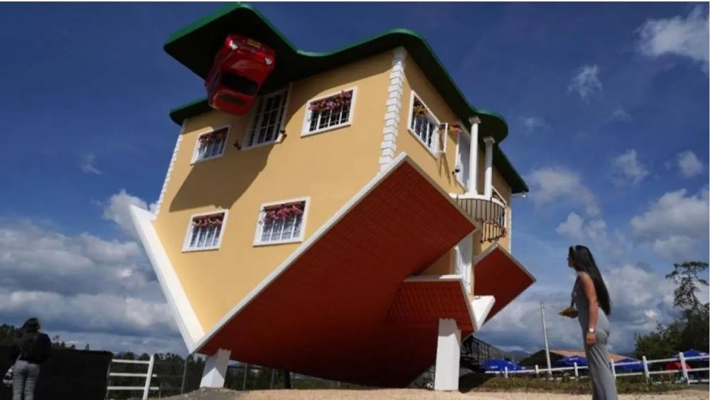 Այս արտասովոր տունը ո՛չ միայն «տակն ու վրայ» է, այլ նաեւ` քիչ մը թեքած: Անիկա շատ մեծ յաջողութիւն կը գտնէ: Անոր բազմաթիւ այցելուները այս փորձառութիւնը անհաւատալի եւ շատ հաճելի կը սեպեն: Նման վայրեր գոյութիւն ունին նաեւ ուրիշ երկիրներու մէջ: Այս «Քասա Լոքա»-ն շինած է Քոլոմպիոյ մէջ ապրող աւստրիացի արուեստագէտ Ֆրից Շէլլ: