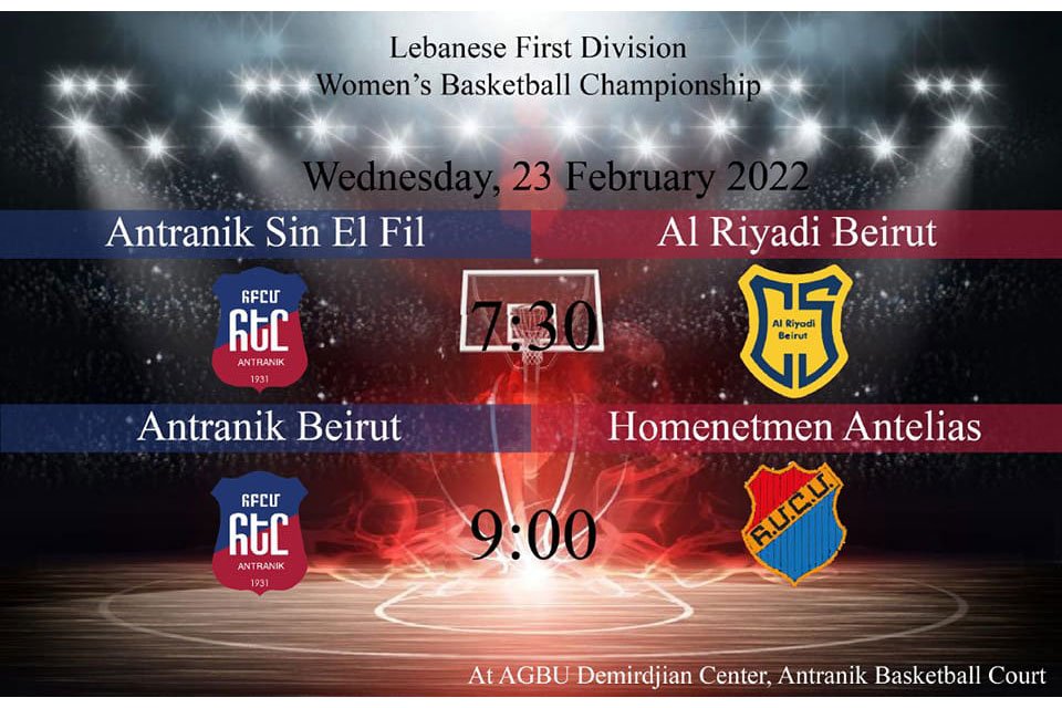 Իսկ մնացեալ երկու մրցումները տեղի պիտի ունենան ՀԲԸՄ-ի «Տեմիրճեան» կեդրոնին մէջ (Նաքքաշ), առաջինը` Անդրանիկ Սին Էլ Ֆիլի եւ Ռիատի Պէյրութի միջեւ (ժամը 18:30-ին), իսկ երկրորդը` Անդրանիկ Պէյրութի եւ ՀՄԸՄ Անթիլիասի միջեւ (ժամը 21:00-ին):
