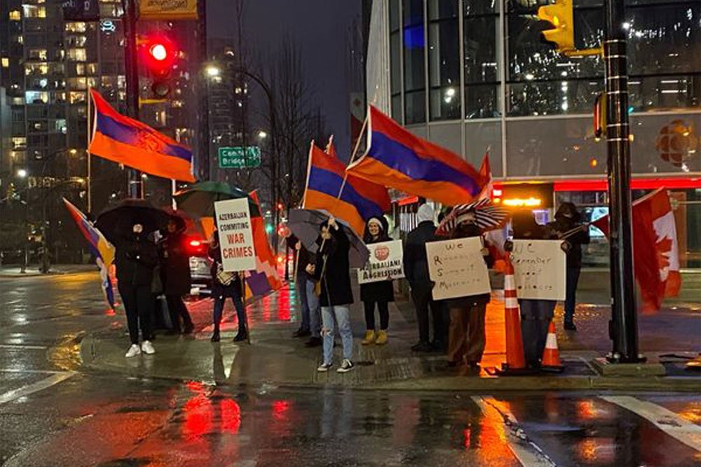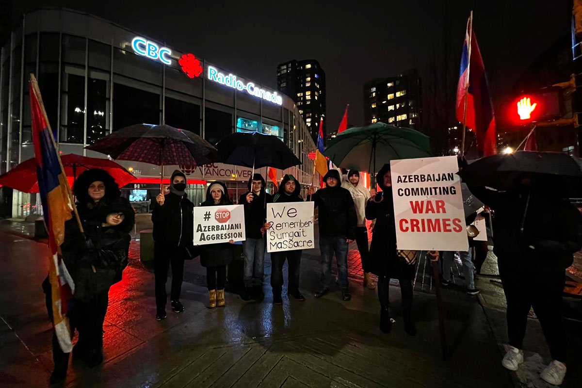 Բողոքի հաւաքը կազմակերպուած էր ՀՅԴ Քանատայի երիտասարդական միութեան «Արշաւիր Շիրակեան» մասնաճիւղին կողմէ: Հաւաքը կայացաւ Քանատայի հանրային ռատիոկայանի Վանգուվըրի կեդրոնատեղիին դիմաց, իբրեւ բողոք, 34 տարի առաջ Սումկայիթի մէջ կատարուած սպանդին: Ցուցարարները ազրպէյճանական ռազմական յանցագործութիւնները եւ Սումկայիթի ջարդերը դատապարտող պաստառներ պարզեցին: