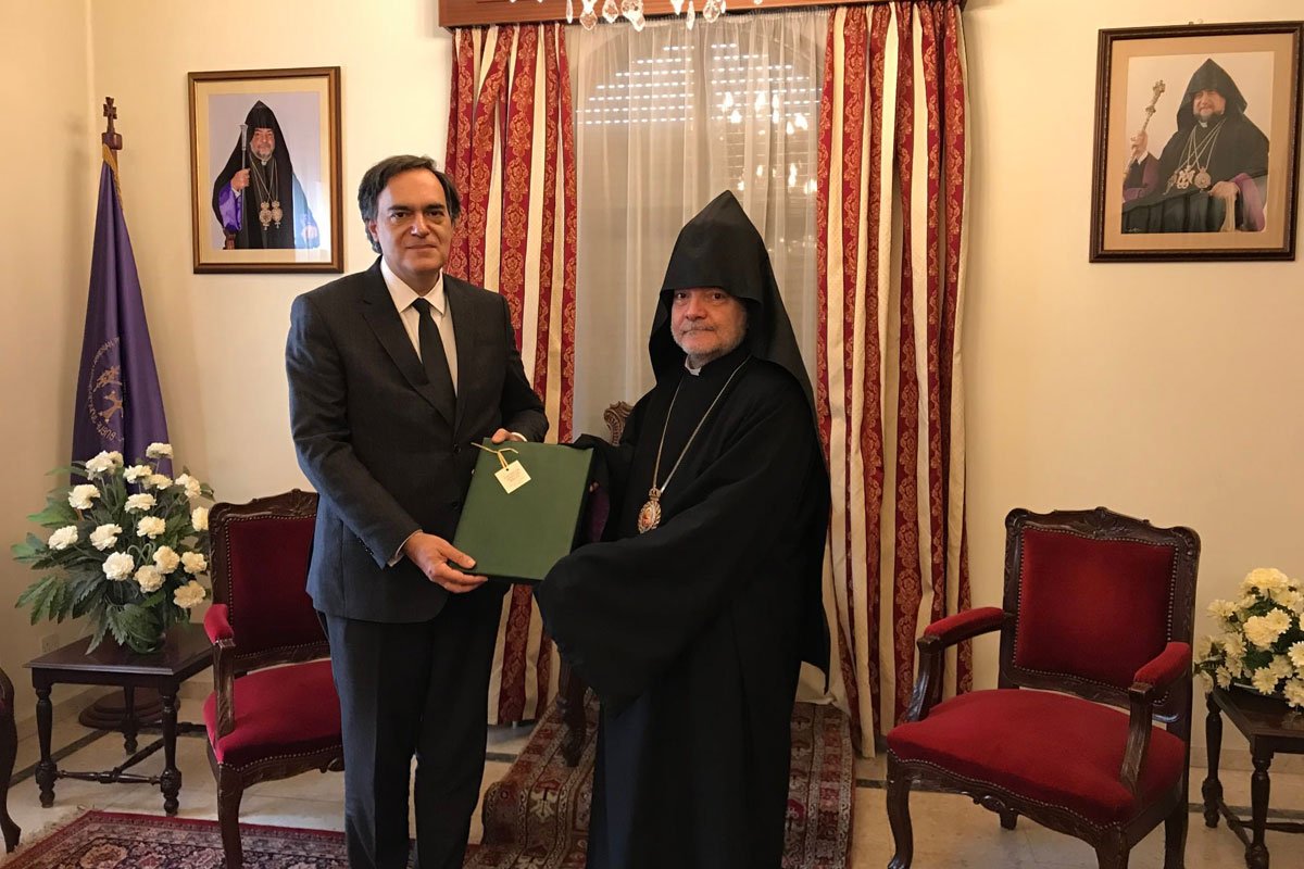 Սրբազան Հայրը նախ շնորհակալութիւն յայտնեց պաշտօնական այցելութեան համար եւ յանուն հայութեան ու Մեծի Տանն Կիլիկիոյ Կաթողիկոսութեան իր երախտագիտութիւնը փոխանցեց Յունաստանի Պետութեան, որ 1996-ին պաշտօնապէս ճանչցաւ Հայոց Ցեղասպանութիւնը եւ տասնամեակներ շարունակ նեցուկ կանգնած է հայութեան, հայրենիքին ու հայկական դատին: Կաթողիկոսական Փոխանորդը նաեւ բաւականին տեղեկութիւններ փոխանցեց Կիպրահայ գաղութի հոգեւոր, ազգային, կրթական, մշակութային, բարեսիրական ու մարզական կառոյցներու եւ աշխատանքներու մասին: