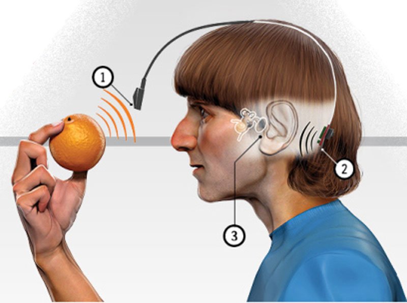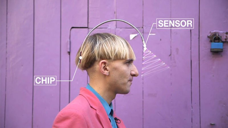 Նիլ Հարպիսըն կը բացատրէ, թէ սկիզբը ուղեղին մէջ խառնակ վիճակ մը կը տիրէր: Երբ ան թրթռացում մը կը ստանար, չէր գիտեր, թէ ան ո՛ր գոյնին կը համապատասխանէր, որովհետեւ ան այդ գոյնը չէր նշմարեր: Սակայն, ժամանակ մը ետք, անոր ուղեղը սկսած էր վարժուիլ եւ ինք կրցած էր պատշաճիլ այդ գոյն-ձայն կապակցութեան: