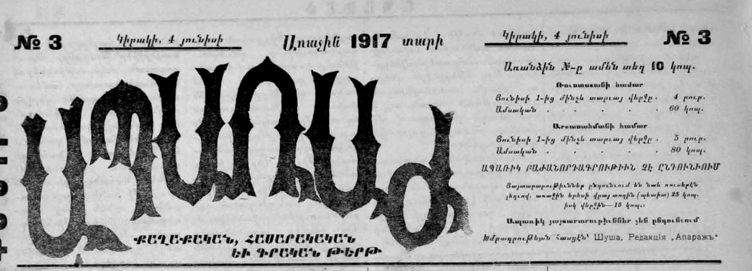 ՋԱՀ ԼՐԱՏՈՒԱԿԱՆ-ի ներկայ եւ հետագայ էջերով, կը վերահրատարակենք յիշեալ ժամանակաշրջանին Կովկասի մէջ լոյս տեսած հայերէն լեզուով յօդուածներ` հաւատալով, որ անոնց բովանդակութիւնը իր պատմական արժէքէն անդին, ընթերցողներուն կը փոխանցէ անցեալէն քաղուելիք կարեւոր իրադարձութիւններ: