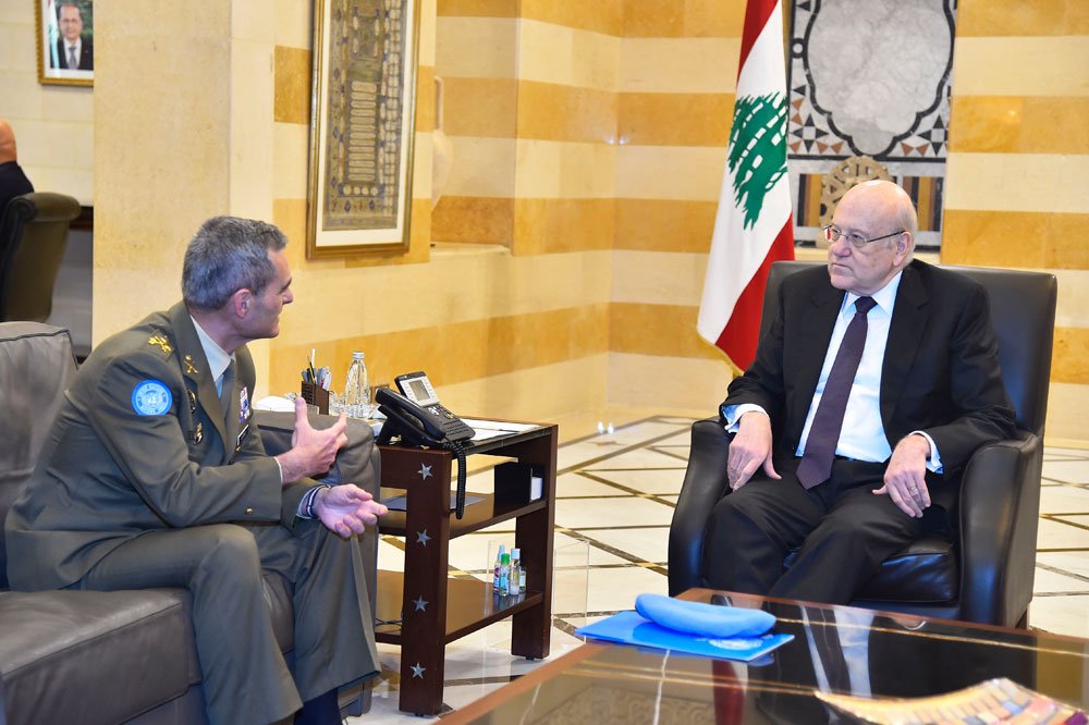 Վարչապետ Նեժիպ Միքաթի երէկ վարչապետարանին մէջ ընդունեց հարաւային Լիբանանի մէջ տեղակայուած ՖԻՆԻՒԼ-ի միջազգային խաղաղապահ ուժերու հրամանատար զօր. Առոլտօ Լազարոն, որուն շնորհակալութիւն յայտնեց հարաւի մէջ ՖԻՆԻՒԼ-ի առաքելութեան եւ հարաւի բարգաւաճման իմաստով խաղաղապահ ուժերուն ունեցած ներդրումին համար: