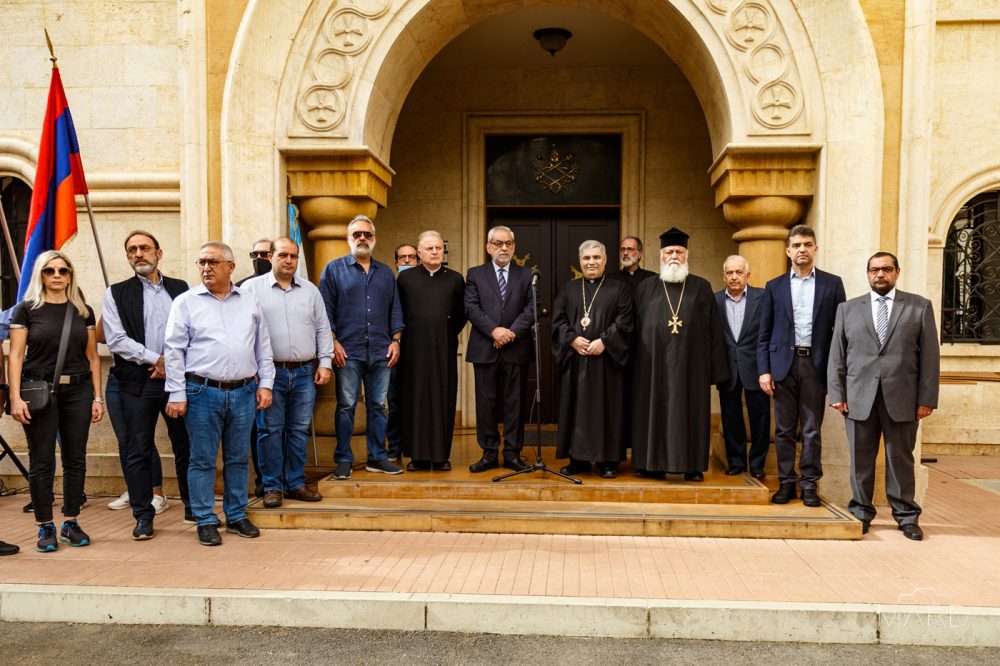 Հայ կաթողիկէ համայնքի Պէյրութի պատրիարքական թեմի օգնական եպիսկոպոս Գէորգ Ասատուրեան դիմաւորեց քայլարշաւին մասնակիցները, իսկ Րաֆֆի քհնյ. Յովհաննէսեան իր խօսքին մէջ ողջունեց ներկաները, յատկապէս` նոր սերունդի ներկայացուցիչները, որոնց աչքերուն մէջ տակաւին կայ պահանջատէրի կայծը: Ան դիտել տուաւ, որ Հայոց ցեղասպանութեան 25-ամեակին առիթով պատրիարքարանի շրջափակին մէջ կանգնեցուած այդ յուշակոթողին շուրջ համախմբուելով` լիբանանահայութիւնը կը հաստատէ, որ ամեակներ կրնան անցնիլ, սակայն իր Դատին եւ նահատակներուն կտակին հայուն կառչածութիւնը կը մնայ ամուր, դէպի փայլուն ապագայ անոր կորովը կը մնայ անսասան: