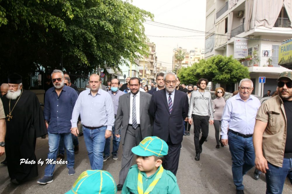 Կիրակի, 24 ապրիլի առաւօտեան ժամը 8:00-ին, ՀՄԸՄ-ի Պէյրութի մասնաճիւղին կազմակերպութեամբ եւ ՀՅԴ «Քրիստափոր» կոմիտէին հովանաւորութեամբ, «Ազատամարտ» ակումբէն ընթացք առաւ քայլարշաւ մը` դէպի Հայ կաթողիկէ պատրիարքարանի յուշարձան: ՀՄԸՄ¬ի Պէյրութի մասնաճիւղի սկաուտական բոլոր խումբերը եւ շրջանէն հայորդիներ, ՀՄԸՄ-ի շեփորախումբին առաջնորդութեամբ, հասան պատրիարքարան, ուր գտնուող Հայոց ցեղասպանութեան նուիրուած յուշարձանին շուրջ զետեղեցին ծաղկեպսակներ` Դաշնակցութեան, ԼՕԽ-ին եւ ՀՄԸՄ-ի սկաուտներուն կողմէ:
