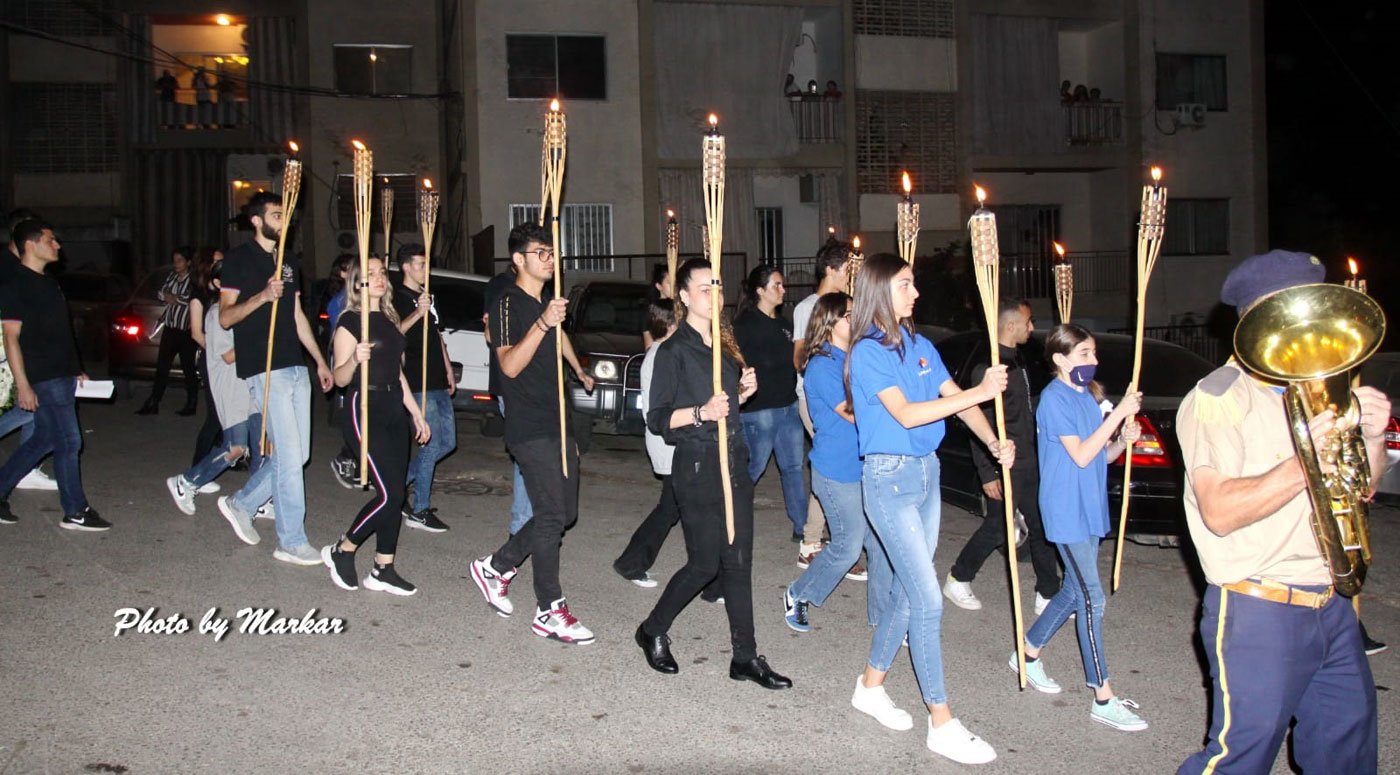 Ներկաները Ֆանարի ակումբէն դէպի Լէյլաւանի յուշարձան ուղղուեցան ՀՅԴ ԼԵՄ-ի «Բեկոր» մասնաճիւղի ջահակիրներով` ընկերակցութեամբ ՀՄԸՄ-ի Լիբանանի շեփորախումբին: Ապա «Զարթիր լաօ» երգին ընկերակցութեամբ «Է. Ակնունի» կոմիտէութեան անունով տեղադրուեցաւ ծաղկեպսակ, իսկ ներկաները յուշարձանին վրայ տեղադրեցին ծաղիկներ: