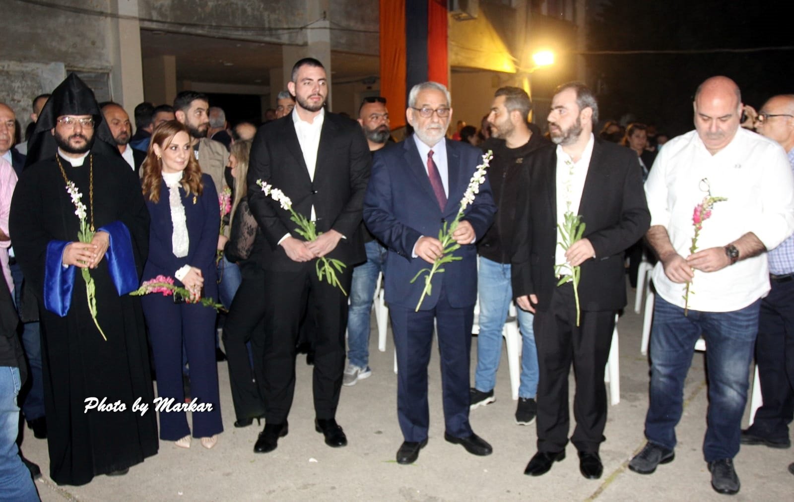 Ապա երեք քոյրեր` Ճեսիքա (ջութակ), Լարա (քլարինեթ) եւ Լիւսի (երգեհոն) Աւետիսեաններ ներկայացուցին «Տէր ողորմեա» եւ «Ամէն, Հայր սուրբ» ստեղծագործութիւնները, որմէ ետք ՀՅԴ ԼԵՄ-ի «Բեկոր» մասնաճիւղին անունով խօսք առաւ Վարուժ Թիւթիւնճեան, որ նշեց, թէ յիշատակի հաւաքները ուխտի վերանորոգման առիթներ են` յաւելեալ թափով շարունակելու աշխատանքները: Ան ըսաւ, որ տագնապներուն ընթացքին պէտք է առաւել եւս համախմբուինք, միանանք, զօրանանք եւ լսենք մեր միլիոնաւոր նահատակներուն եւ հերոսներուն կանչերը` չյանձնուիլ եւ պայքարիլ: Թիւթիւնճեան յայտնեց. «Մենք` իբրեւ ԼԵՄականներ, պարտինք Հայ դատի պայքարի ջահը միշտ վառ պահել: Շարքերը ամրացնենք եւ բարոյապէս, հոգեպէս ու ֆիզիքապէս պատրաստուինք մեծ յաղթանակներուն: Անպայման վերստին պիտի ազատագրենք Մուշը, Վանը եւ Շուշին»: