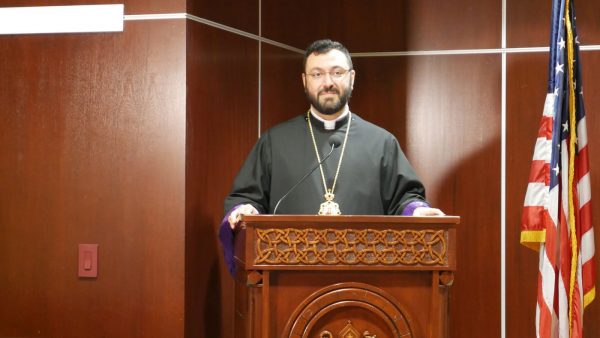 Այնուհետեւ բեմ բարձրացաւ Առաջնորդ Սրբազան Հայրը եւ Ուսուցչաց տօնին առիթով շնորհաւորեց բոլոր դաստիարակներն ու կրթական մշակները՝ ըսելով. «Ընդհանրապէս հայ ուսուցիչը եւ մասնաւորաբար հայերէնաւանդ ուսուցիչը հրաւիրուած են վայելելու եկեղեցւոյ ու ազգին՝ այլ խօսքով բովանդակ ժողովուրդին յարգանքն ու գուրգուրանքը: Այսօր, ձեր Առաջնորդ Սրբազանը հրաւիրած է ձեզ ազգի տուն՝ Ազգ. Առաջնորդարան, յանուն մեր ժողովական կառոյցներուն ու մարմիններուն եւ մեր հոգեւոր խնամքին ներքեւ գործող բոլոր-բոլորին, միայն ՇՆՈՐՀԱԿԱԼ ԵՄ ըսելու համար ձեզի, որ ոչ թէ ձեր իմացածէն, այլ ձեր ինքնութենէն ու էութենէն ձեր հաւատքն ու գիտութիւնը նշխարի պէս կը ձգէք մեր աշակերտներու հոգեմտաւոր գանձարկղին մէջ»: