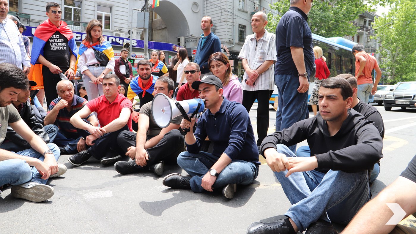 Որոշ ժամանակ հոն մնալէ ետք «Դիմադրութեան» շարժման մասնակիցները երթով ուղղուեցան դէպի Մաշտոցի պողոտայ եւ փակեցին Ամիրեան-Մաշտոց փողոցներուն խաչմերուկը, անոնք նստան փողոցը, երգեցին հայրենասիրական երգեր: Ոստիկանութեան ներկայացուցիչը կոչ ուղղեց խաչմերուկը բանալու: