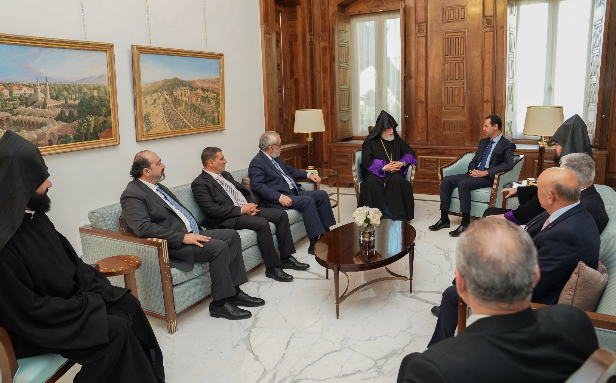 Վեհափառ հայրապետը, իր կարգին, բարձր գնահատեց Սուրիոյ պետութեան աջակցութիւնը հայ համայնքի վերականգնման: Վեհափառ հայրապետը վստահեցուց, որ Սուրիոյ հայութիւնը ամէն գնով սատար պիտի հանդիսանայ Սուրիոյ վերաշինութեան ու վերածաղկման աշխատանքներուն: