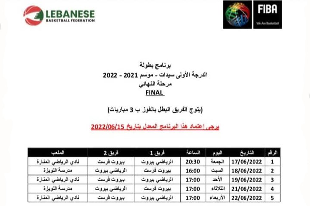 Լիբանանի պասքեթպոլի ֆետերասիոնին մամլոյ քարտուղարութիւնը հրապարակեց Լիբանանի պասքեթպոլի աղջկանց Ա. դասակարգի ախոյեանութեան 2021-2022 տարեշրջանի աւարտական հանգրուանի մրցումներուն յայտագիրը: