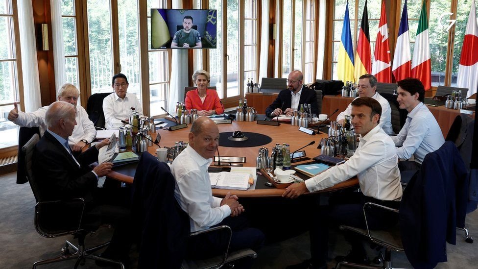 Զելենսքի Պաւարիոյ Ալպեան լեռներուն վրայ գտնուող «Շլոս Էլմաու» ամրոցին մէջ առաւօտեան նիստի ընթացքին կոչ ուղղած է մեծ ջանքեր գործադրելու` պատերազմը մինչեւ ձմեռ աւարտելու համար: Աղբիւրը կը նշէ, որ Զելենսքիի ուղերձը յստակ նշան էր, թէ պատերազմի ընթացքը ինչպէս կը տեսնէ:
