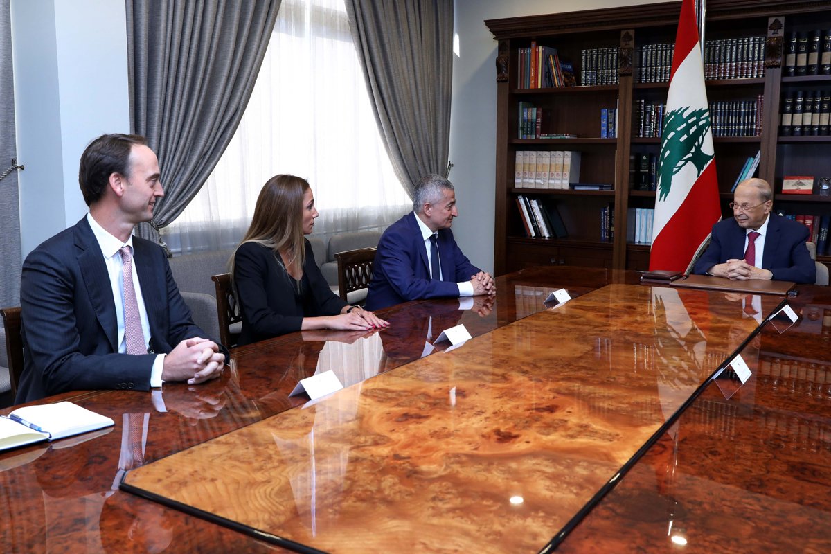 Հանրապետութեան նախագահ զօր. Միշել Աուն երէկ նախագահական պալատին մէջ ընդունեց Կեդրոնական դրամատան հաշիւները իրաւական հաշուեքննութեան ենթարկող «Ալվարեզ էնտ Մարսըլ» միջազգային ընկերութեան շրջանային տնօրէն Ճէյմս Տենիըլը` ներկայութեամբ ելեւմուտքի նախարարի պաշտօնակատար Եուսեֆ Խալիլի եւ Կեդրոնական դրամատան մօտ կառավարութեան ներկայացուցիչ Քրիսթել Ուաքիմի: