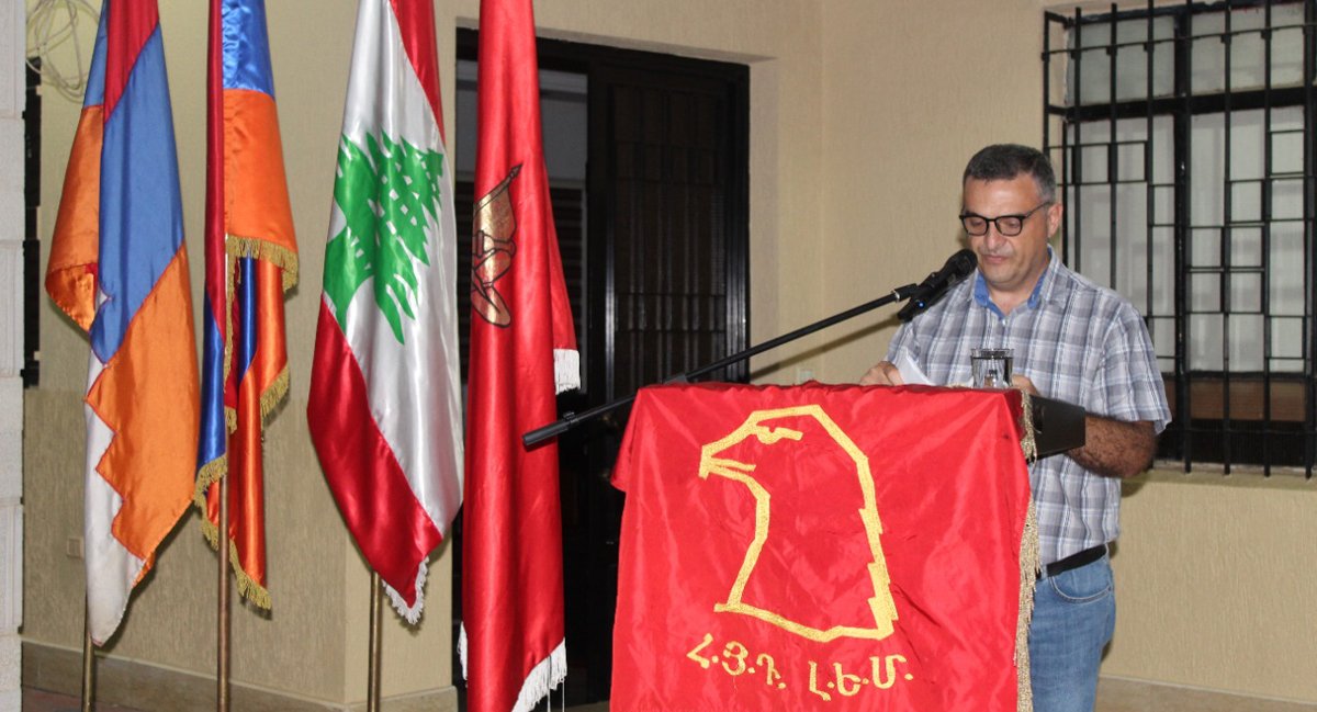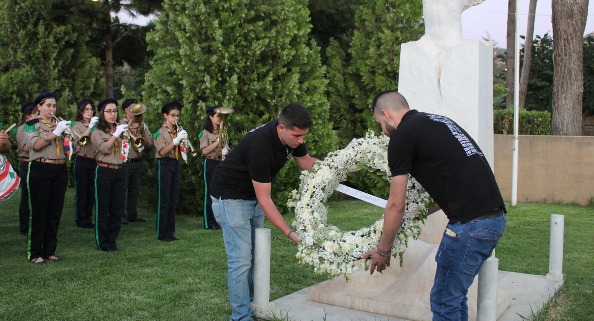 Ոգեկոչման հանդիսութիւնը սկսաւ ՀՄԸՄ-ի Այնճարի մասնաճիւղի փողերախումբին հնչեցուցած Լիբանանի, Հայաստանի եւ Արցախի քայլերգներով: