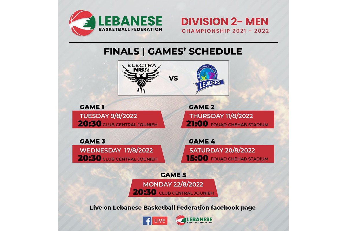 Լիբանանի պասքեթպոլի ֆետերասիոնը երէկ հրապարակեց Լիբանանի պասքեթպոլի տղոց Բ. դասակարգի ախոյեանութեան 2021-2022 տարեշրջանի աւարտական հանգրուանի մրցումներուն յայտագիրը, ուր իրարու դէմ պիտի մրցին Լիտըրզ եւ Ժուփիթըր: