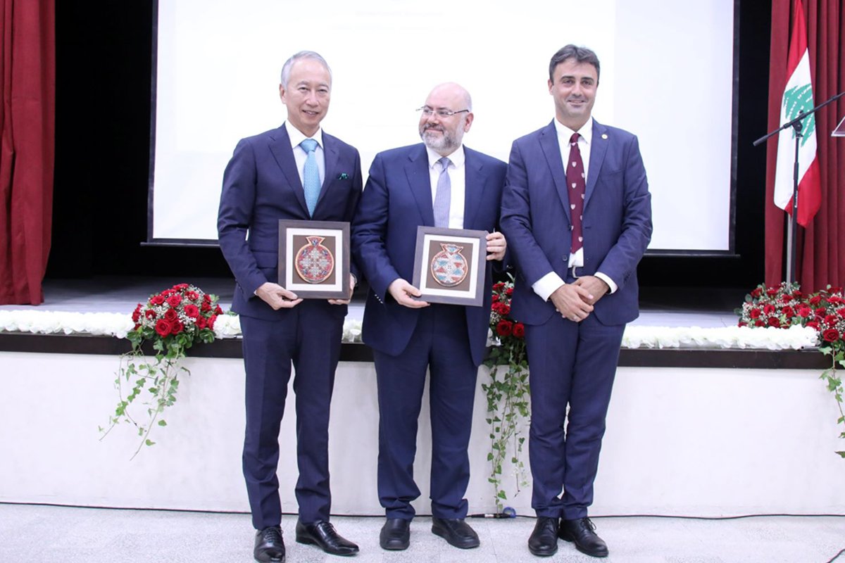 Ապա հրաւիրեց Ճափոնի դեսպան Օքուպօ Թաքեշին, որ իր ուրախութիւնը, որ ներկայ է այս արարողութեան եւ հաստատեց, որ իր երկիրը` Ճափոնը, ըլլալով Լիբանանի բարեկամ երկիր, պիտի շարունակէ հայթայթել օժանդակութիւն, որպէսզի Լիբանանը կարենայ դիմագրաւել այս դժուարին օրերը: