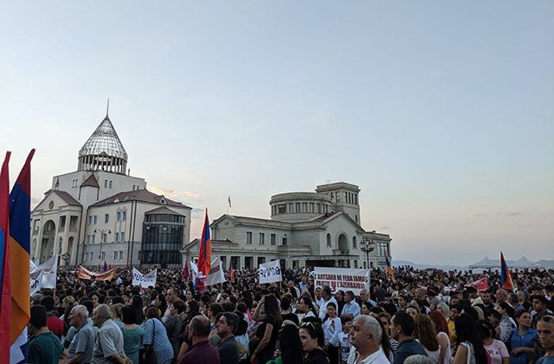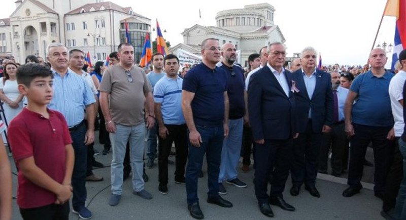 Արցախցիները հանրահաւաքին եկած էին «Ո՛չ Արցախի հայաթափման», «Ո՛չ ազրպէյճանական բռնագրաւումին» պաստառներով: Խումբ մը քաղաքացիներ ալ աջակցութիւն կը յայտնէին պաշտպանութեան բանակի նախկին հրամանատար Միքայէլ Արզումանեանին, որ կը մեղադրուի Շուշիի անկման համար եւ հանրահաւաքէն երկու օր առաջ կալանաւորուեցաւ: Անոնք կը պահանջէին զայն ազատ արձակել: