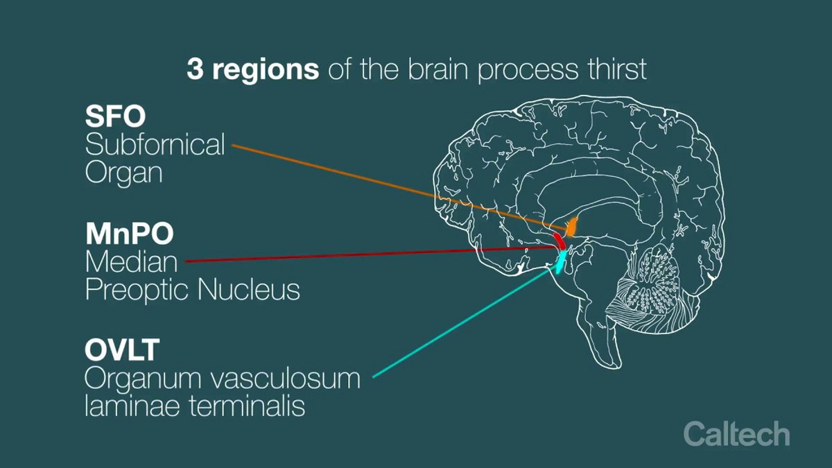 Հետազօտողները 1950-ականներէն գիտեն, որ ուղեղի ենթատեսաթումբի` (hypothalamus) ոլոռնի չափ կառուցուածքի օրկանն է ծարաւի զգացումը վերահսկողը: Շուէտացի ֆիզիոլոկ Անտերսընը շարք մը փորձարկումներու ընթացքին, երբ ան աղ ներարկած է այծերու ուղեղին մէջ, ցոյց տուած է, որ SFO կոչուած հատուածը կը վերահսկէ արեան մէջ ջուրի եւ աղերու քանակը եւ կը յառաջացնէ խմելու ցանկութիւն: SFO-ն նոյն դերը կը կատարէ նաեւ մարդոց մօտ: Բայց Անտերսընի գաղափարները չկրցան լիովին բացատրել, թէ ինչպէ՛ս մենք ծարաւը կը զգանք: Օրինակ, երբ մենք կը խմենք ջուրը, գրեթէ ակնթարթօրէն բաւարարուած կը զգանք. այնուամենայնիւ, 10-15 վայրկեան պէտք է, որ հեղուկը անցնի մեր բերանէն, հասնի մարսողական համակարգի ստորին բաժինները, որպէսզի հասնի արիւն: «Ուղեղին մէջ կայ բան մը, որ կը յայտնէ, թէ ձեր արեան պայմանները հաւանաբար տակաւին չեն փոխուած, բայց դուք բաւականաչափ ջուր խմած էք ձեր ծարաւը յագեցնելու համար», կը բացատրէ Փրինսթըն համալսարանի ջղաբան Քրիսթոֆըր Զիմերման: