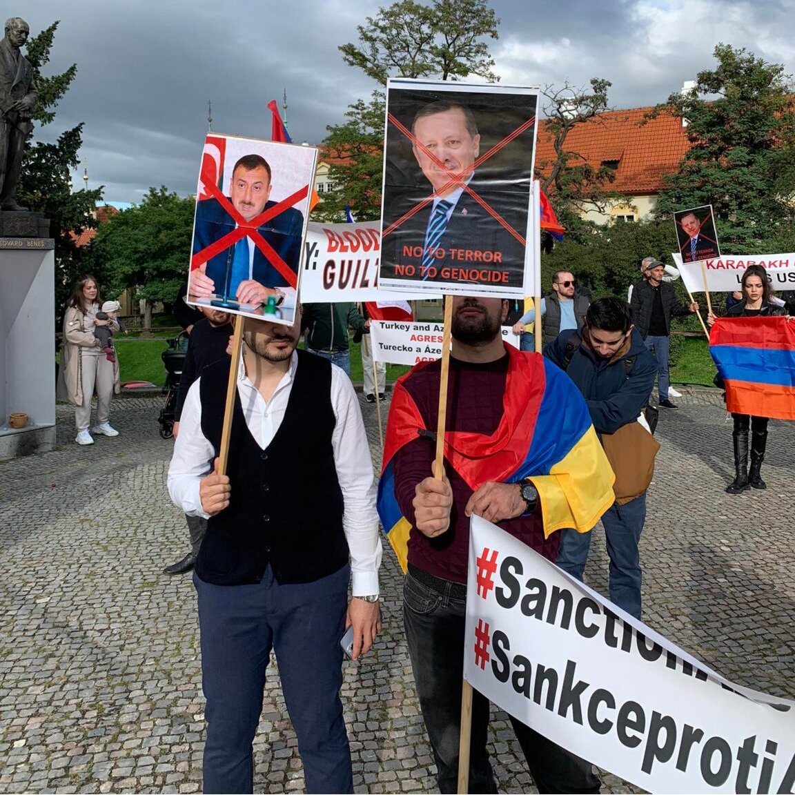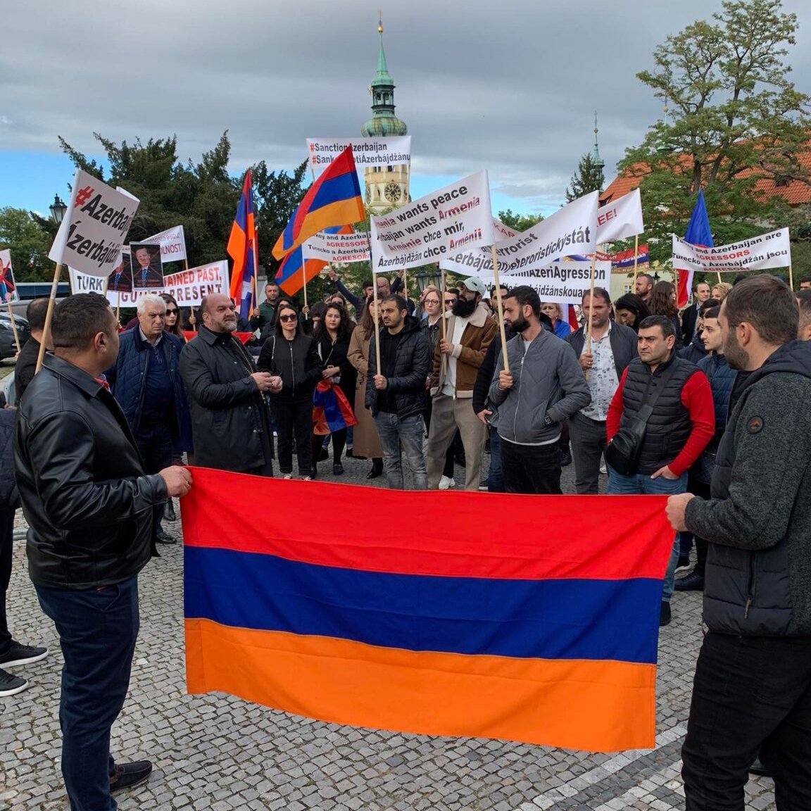 Դրա վկայութիւնն էր նաեւ Չեխիայի արտգործնախարարութեան շէնքի մօտ (որն, ի դէպ, հեռու չէր Փրակայի ամրոցից եւ պատուիրակութիւներն անցնում էին այդ շէնքի մօտով), չեխահայ համայնքի կազմակերպած ազրպէյճանական վերջին ագրեսիան դատապարտող ցոյցը եւ պահանջագրի յանձնումը ԵՄ նախագահող երկրի կառավարութեանն ու խորհրդարանին` պահանջելով նաեւ Ազրպէյճանի նկատմամբ պատժամիջոցների կիրառումը: Ըստ երեւոյթին, Ալիեւն այս ցոյցի մասին նախապէս տեղեակ լինելով` իր հետ Փրակա էր բերել 57 թիկնապահի, որոնք նրան պէտք էր պաշտպանէին իր ողջ կեցութեան ընթացքում: Քիչ չէին նաեւ Էրտողանին ուղեկցող թիկնապահները: Ամէն դէպքում, նրանք կարողացան մամուլի հետ շփուելու իրենց ընտրած ձեւաչափերով յետին գիծ մղել Փաշինեանին` կրկին առաջ տանելով իրենց տեսակէտները: