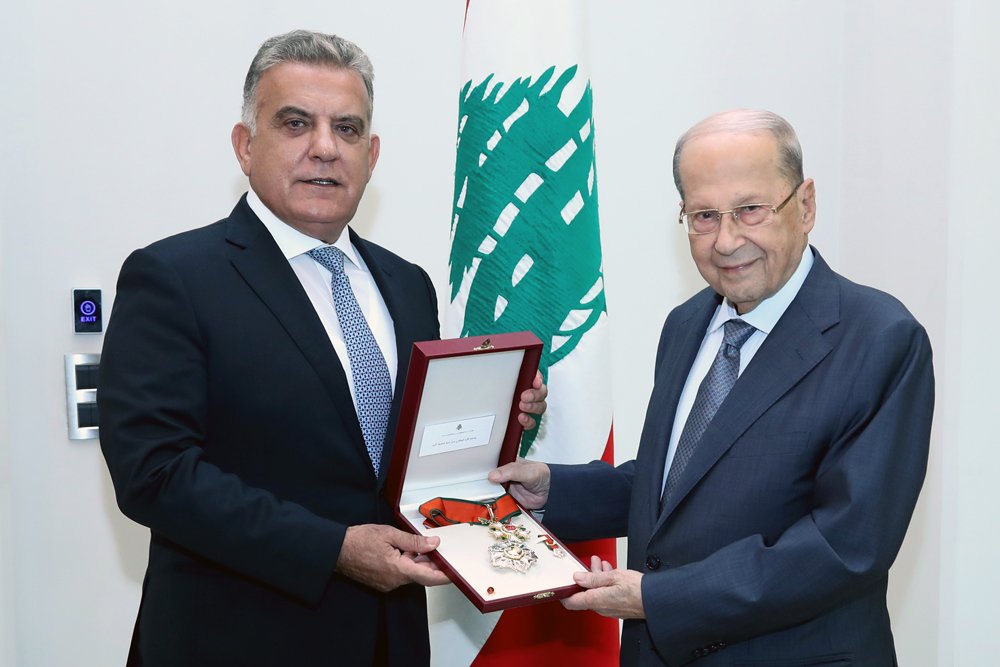 Հանրապետութեան նախագահ զօր. Միշել Աուն երէկ նախագահական պալատին մէջ պարգեւատրեց Ընդհանուր ապահովութեան ընդհանուր տնօրէն հազարապետ-զօրավար Ապպաս Իպրահիմը` անոր շնորհելով «Մեծ սպայ»-ի աստիճանի Մայրիներու շքանշանը` առ ի գնահատանք Իպրահիմի ծառայութեան` ապահովական, զինուորական եւ քաղաքական ոլորտներուն, ինչպէս նաեւ հարաւային Լիբանանի ծովային սահմանագծումի համաձայնութիւնը իրականացնելու առումով անոր ունեցած դերակատարութեան համար: