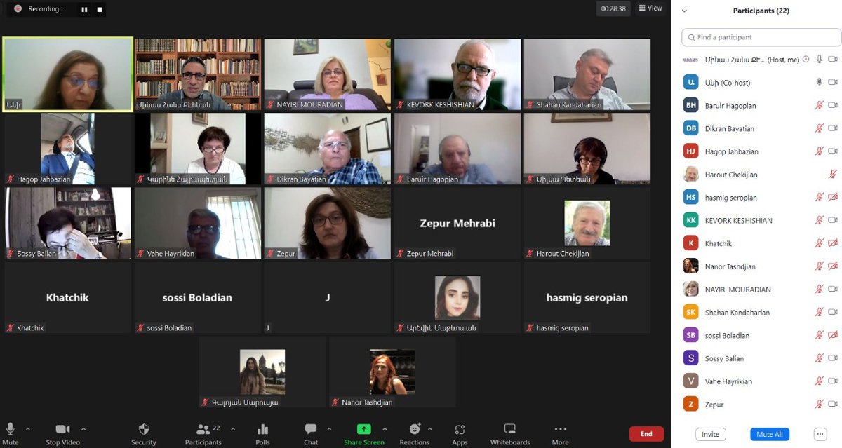Տեղեկութիւններով յագեցած այս խիստ այժմէական նիւթին մասին համապարփակ դասախօսութեան հետեւեցաւ լսարանին մասնակցողներու կողմէ հարց ու պատասխանի տեսքով քննարկում` սփիւռքէն եւ հայրենիքէն առցանց լսարանին մասնակիցներուն կողմէ: