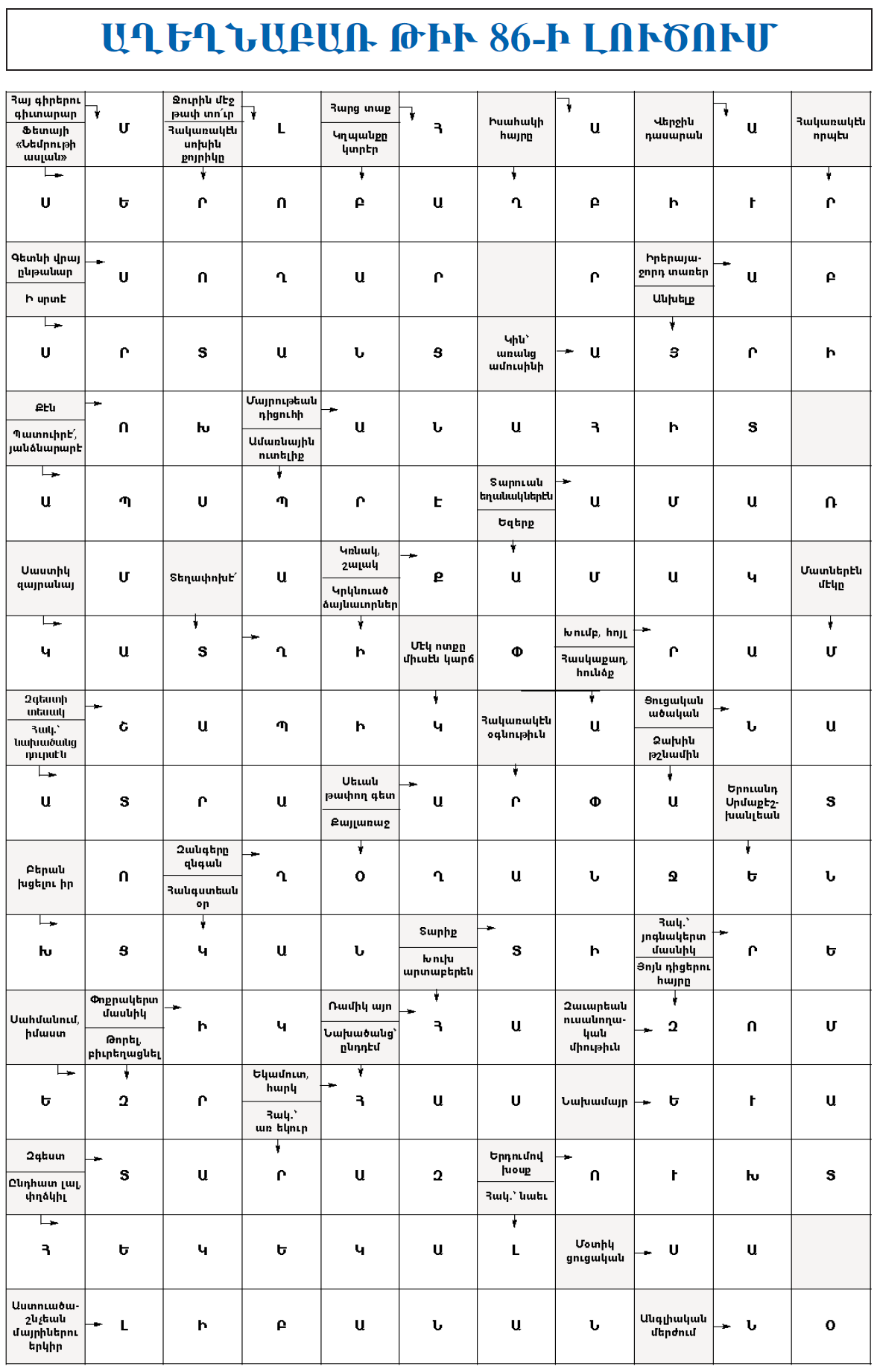 Պատրաստեց՝ <strong>ՆԱՆՕՐ ԳՈՉՈՒՆԵԱՆ-ԹԱՇՃԵԱՆ</strong> <a href="https://www.aztagdaily.com/wp-content/uploads/2022/11/agheghnapar-tiv-86-loudzoum.png"><img class="aligncenter size-full wp-image-563322" src="https://www.aztagdaily.com/wp-content/uploads/2022/11/agheghnapar-tiv-86-loudzoum.png" alt="" width="1177" height="1841" /></a>
