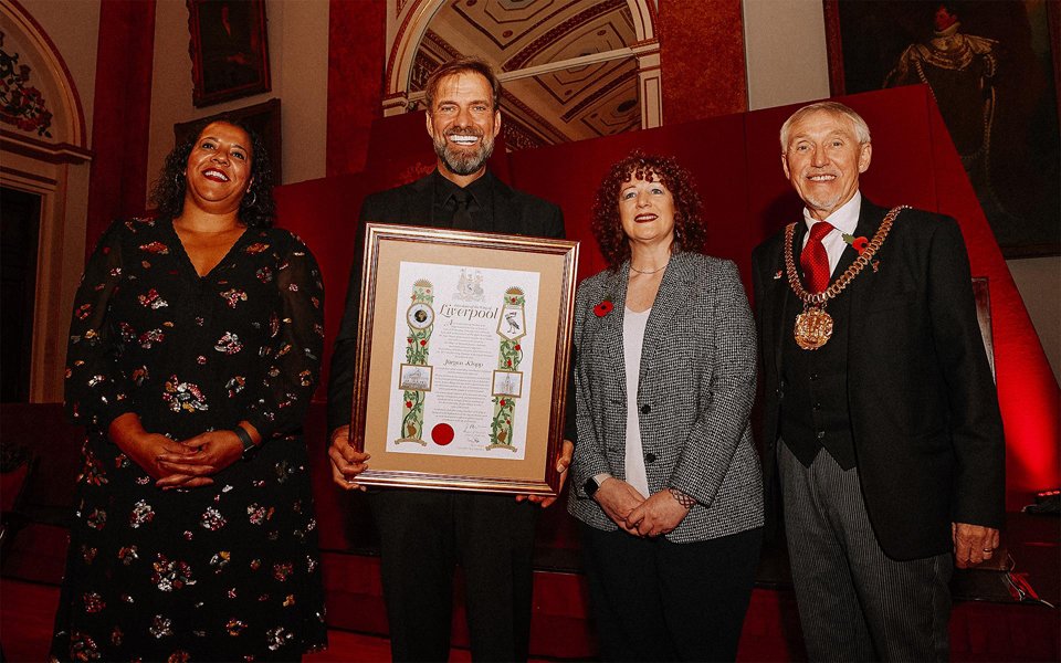 Քաղաքապետարանին մէջ տեղի ունեցած այս արարողութեան ներկայ էին Եիւրկըն Քլոփի մարզչական կազմին անդամները, ակումբին թեքնիք տնօրէնը, Լիվըրփուլի նախկին խաղացող եւ մարզիչ Քենի Տալկլիշ եւ Լիվըրփուլի քաղաքապետ Ճոան Անտերսոն: