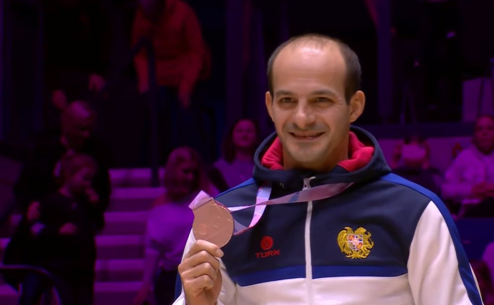 Անգլիոյ Լիվըրփուլ քաղաքին մէջ տեղի ունեցող աշխարհի մարմնամարզութեան ախոյեանութեան նժոյգ մարզաձեւի մրցումներուն, Հայաստանի ներկայացուցիչ, աշխարհի ախոյեանութեան պրոնզէ մետալակիր, Եւրոպայի կրկնակի ախոյեան, փոխախոյեան եւ եռակի պրոնզէ մետալակիր Յարութիւն Մերդինեան տիրացաւ պրոնզ մետալին` ապահովելով 14,733 կէտ: