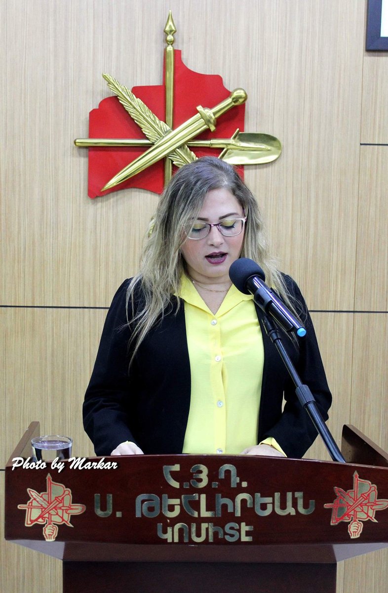 Ապա խօսք առաւ «Թեհլիրեան» կոմիտէի ներկայացուցիչ Ռոպեր Էշքիեան, որ նշեց, թէ այս օրերը կը զուգադիպին ՀՅԴ 132-ամեակի տօնակատարութիւններուն եւ առիթ կը հանդիսանան, որ Դաշնակցութիւնը ներկայանայ ժողովուրդին իր կատարած եւ կատարելիք ծառայութիւններուն մասին խօսելու համար: